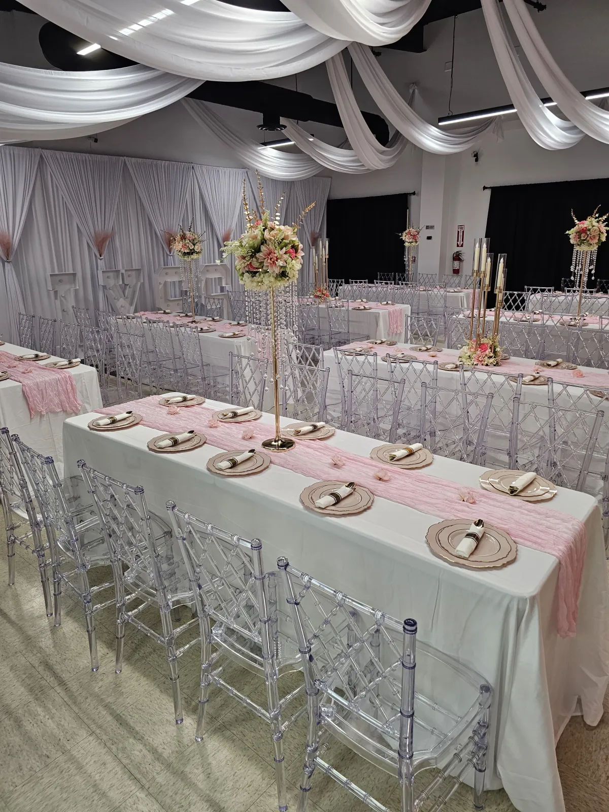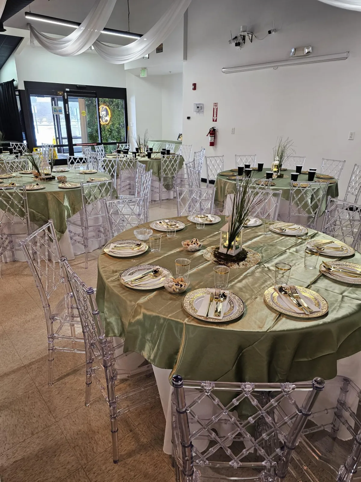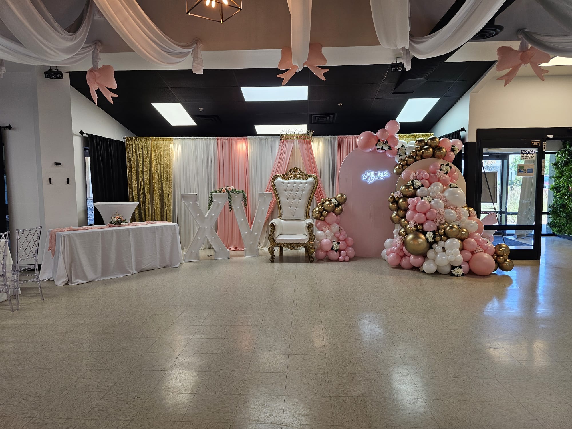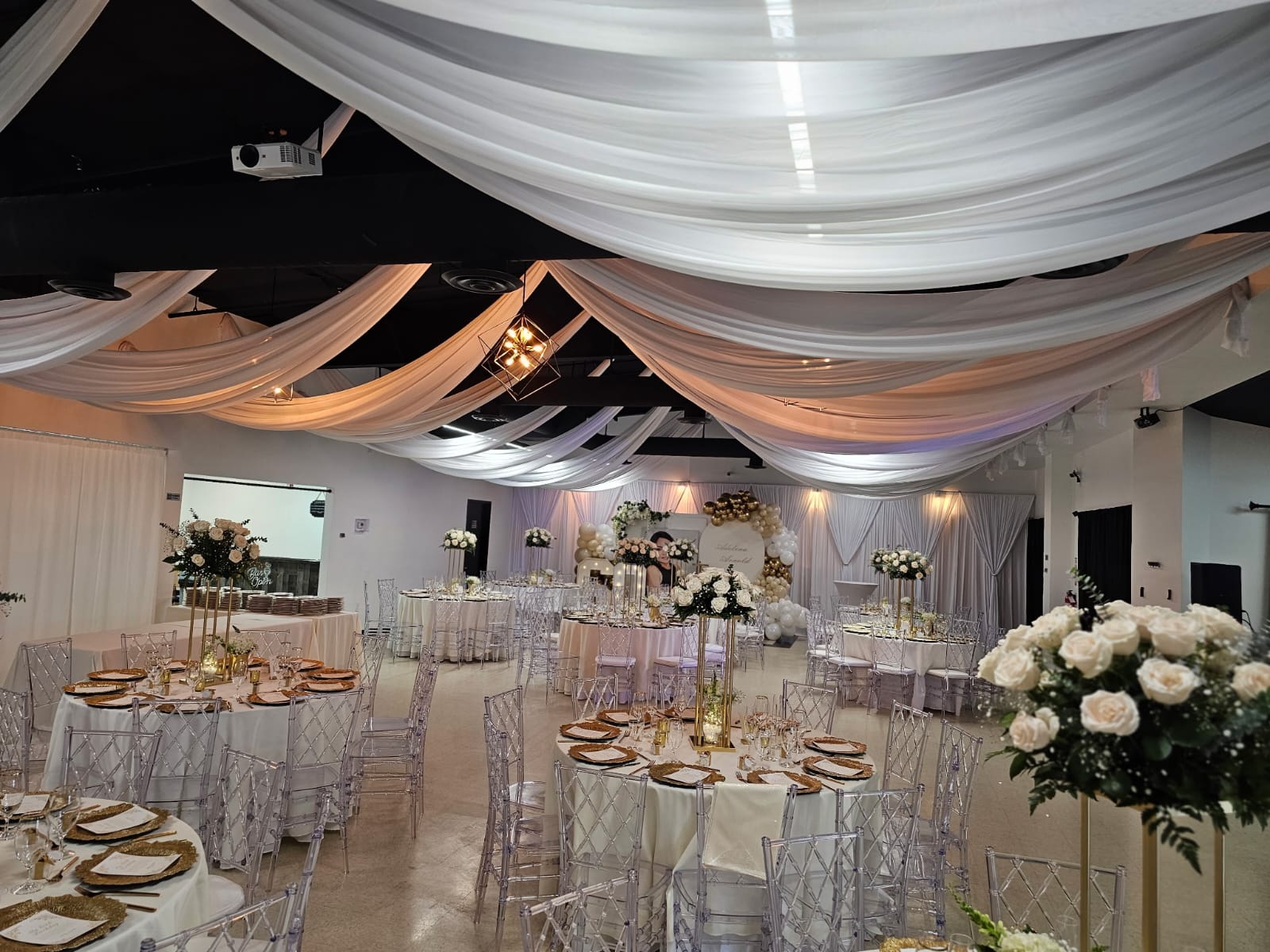 With a capacity of 150 people our venue is able to host several different types of events such as anniversaries, birthday parties, baby showers, celebration of life, coming of age parties (Quincenera/Quincenero), corporate holiday parties, corporate events, engagement parties, gender reveal, religious gatherings, seminars, Sweet Sixteens, wedding receptions, wedding ceremonies, and more!